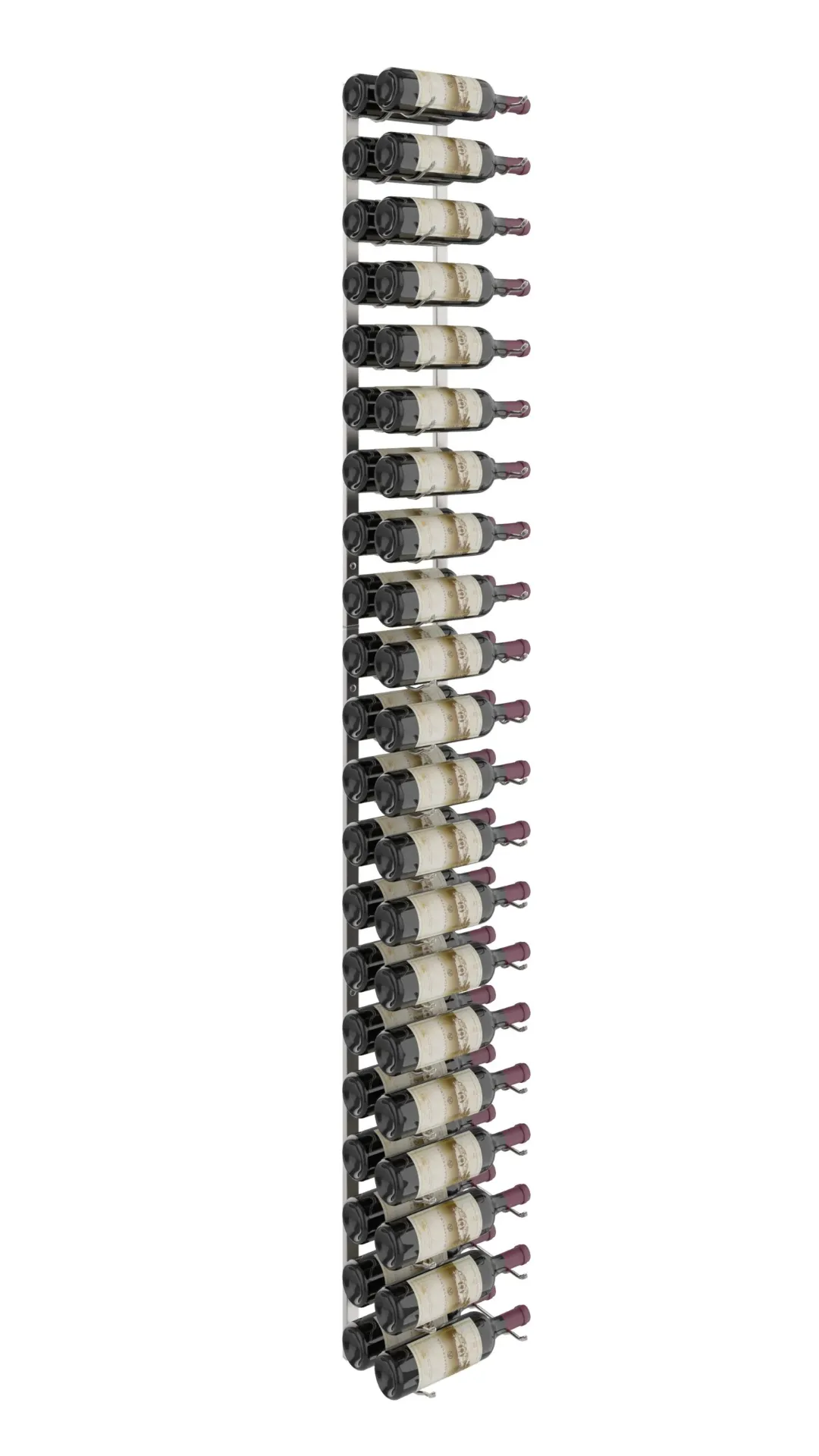 The W Series 7 is an 42-bottle tall, wall-mounted wine rack that opens any wall to modern, label-forward design. Six-feet tall and available in three bottle depths, our innovative metal wine rack is perfect for collectors who have ample space and plenty of wine bottles to show off.