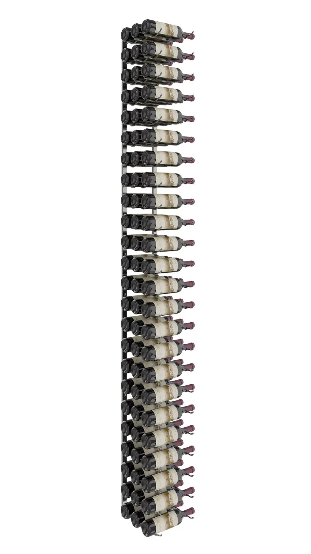 The W Series 8' is an 72-bottle tall, wall-mounted wine rack that opens any wall to modern, label-forward design. Six-feet tall and available in three bottle depths, our innovative metal wine rack is perfect for collectors who have ample space and plenty of wine bottles to show off.