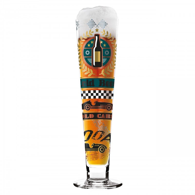 Cars, motorcycles and powerful engines interpret the typical male world in a harsh but humorous way. Each glass is delivered in a gift wrapping ideal for all the bad boys.