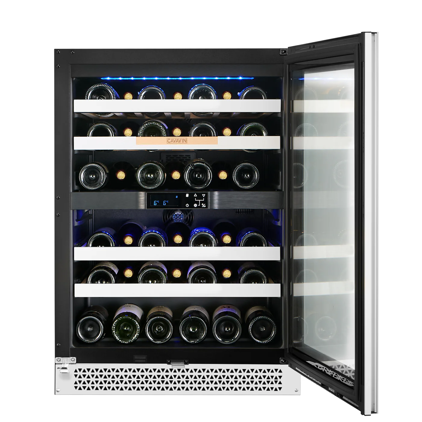 Cavavin, VINOA 41-bottle White Wine CabinetCavavin V-041WBVCFGB, Vinoa Compact dual-zone cellar, ideal for storing up to 41 bottles in perfect conditions. All of our units are equipped with a copper evaporat.SKU: V-041WBVCFGW Hinge Right Hinged (Door Opens Left To Right) $1,965.00 Qty: Buy Now Ship toSelect countryUnited StatesCanadaAfghanistanAlbaniaAlgeriaAmerican SamoaAndorraAngolaAnguillaAntarcticaAntigua and BarbudaArgentinaArmeniaArubaAustraliaAustriaAzerbaijanBahamasBahrainBangladeshBarbadosBelarusBelgiumBelizeBeninBermudaBhutanBoliviaBosnia and HerzegowinaBotswanaBouvet IslandBrazilBritish Indian Ocean TerritoryBrunei DarussalamBulgariaBurkina FasoBurundiCambodiaCameroonCape VerdeCayman IslandsCentral African RepublicChadChileChinaChristmas IslandCocos (Keeling) IslandsColombiaComorosCongoCook IslandsCosta RicaCote D'IvoireCroatiaCubaCyprusCzech RepublicDenmarkDjiboutiDominicaDominican RepublicEcuadorEgyptEl SalvadorEquatorial GuineaEritreaEstoniaEthiopiaFalkland Islands (Malvinas)Faroe IslandsFijiFinlandFranceFrench GuianaFrench PolynesiaFrench Southern TerritoriesGabonGambiaGeorgiaGermanyGhanaGibraltarGreeceGreenlandGrenadaGuadeloupeGuamGuatemalaGuineaGuinea-bissauGuyanaHaitiHeard and Mc Donald IslandsHondurasHong KongHungaryIcelandIndiaIndonesiaIran (Islamic Republic of)IraqIrelandIsraelItalyJamaicaJapanJordanKazakhstanKenyaKiribatiKoreaKorea, Democratic People's Republic ofKuwaitKyrgyzstanLao People's Democratic RepublicLatviaLebanonLesothoLiberiaLibyan Arab JamahiriyaLiechtensteinLithuaniaLuxembourgMacauMacedoniaMadagascarMalawiMalaysiaMaldivesMaliMaltaMarshall IslandsMartiniqueMauritaniaMauritiusMayotteMexicoMicronesiaMoldovaMonacoMongoliaMontenegroMontserratMoroccoMozambiqueMyanmarNamibiaNauruNepalNetherlandsNetherlands AntillesNew CaledoniaNew ZealandNicaraguaNigerNigeriaNiueNorfolk IslandNorthern Mariana IslandsNorwayOmanPakistanPalauPanamaPapua New GuineaParaguayPeruPhilippinesPitcairnPolandPortugalPuerto RicoQatarReunionRomaniaRussiaRwandaSaint Kitts and NevisSaint LuciaSaint Vincent and the GrenadinesSamoaSan MarinoSao Tome and PrincipeSaudi ArabiaSenegalSerbiaSeychellesSierra LeoneSingaporeSlovakia (Slovak Republic)SloveniaSolomon IslandsSomaliaSouth AfricaSouth Georgia & South Sandwich IslandsSpainSri LankaSt. HelenaSt. Pierre and MiquelonSudanSurinameSvalbard and Jan Mayen IslandsSwazilandSwedenSwitzerlandSyrian Arab RepublicTaiwanTajikistanTanzaniaThailandTogoTokelauTongaTrinidad and TobagoTunisiaTurkeyTurkmenistanTurks and Caicos IslandsTuvaluUgandaUkraineUnited Arab EmiratesUnited KingdomUnited States minor outlying islandsUruguayUzbekistanVanuatuVatican City State (Holy See)VenezuelaViet NamVirgin Islands (British)Virgin Islands (U.S.)Wallis and Futuna IslandsWestern SaharaYemenZambiaZimbabwe *Other *Shipping MethodNameEstimated DeliveryPriceNo shipping optionsApply Custom wishlist OKAdd to wishlistAdd to compare listDescriptionImmerse yourself in the art of entertaining with a VINOA 2-zone wine cellar, a true gem of refinement for discerning connoisseurs. This exceptional cellar holds up to 41 bottles in a meticulously finished white frame with UV-resistant double-glazed glass, for a collection showcased just like in the finest wineries. Thanks to its two distinct temperature zones, it perfectly enhances each vintage, whether powerful reds or delicate whites.Let yourself be seduced by the touch of the beech wood shelves, the soft, adjustable LED light, and the absolute silence of a latest-generation compressor, for an incomparable sensory experience. The LCD touchscreen, the carbon filter, and the reversible door reflect discreet luxury, combining technology and elegance. With the VINOA wine cellar, each bottle becomes a centerpiece, each tasting a special moment reserved for enlightened connoisseurs.COLLECTION VINOADimensions: 34" 1/4 H x 23" 7/8 W x 23" 3/4 DCapacity up to 41 bottles (750 ml)Built-in or freestanding installationReversible glass door, gray-tinted and anti-uv with white frame2 temperature zones (For red & white wines) - Top : 1-12°C (33.5-54°F) - Bottom : 12-20°C (54-68°F)One-touch LED digital controls located insideLow emissivity lighting with automatic or continuous LEDFull extension sliding shelves, suitable for all sizes of 750 ml bottles with white frontsSecurity lock with tubular handleStainless recessed kick plateAutomatic defrost & generated hygrometryQuiet compressor (43 dB)Superior energy efficiency and environmentally friendly (Refrigerant gas R-600)Activated charcoal filter to eliminate odours2-years warranty on parts and labor. 5-years warranty on compressorUL/CSA/ETL approved OverviewReviewsContact UsDescriptionImmerse yourself in the art of entertaining with a VINOA 2-zone wine cellar, a true gem of refinement for discerning connoisseurs. This exceptional cellar holds up to 41 bottles in a meticulously finished white frame with UV-resistant double-glazed glass, for a collection showcased just like in the finest wineries. Thanks to its two distinct temperature zones, it perfectly enhances each vintage, whether powerful reds or delicate whites.Let yourself be seduced by the touch of the beech wood shelves, the soft, adjustable LED light, and the absolute silence of a latest-generation compressor, for an incomparable sensory experience. The LCD touchscreen, the carbon filter, and the reversible door reflect discreet luxury, combining technology and elegance. With the VINOA wine cellar, each bottle becomes a centerpiece, each tasting a special moment reserved for enlightened connoisseurs.COLLECTION VINOADimensions: 34" 1/4 H x 23" 7/8 W x 23" 3/4 DCapacity up to 41 bottles (750 ml)Built-in or freestanding installationReversible glass door, gray-tinted and anti-uv with white frame2 temperature zones (For red & white wines) - Top : 1-12°C (33.5-54°F) - Bottom : 12-20°C (54-68°F)One-touch LED digital controls located insideLow emissivity lighting with automatic or continuous LEDFull extension sliding shelves, suitable for all s