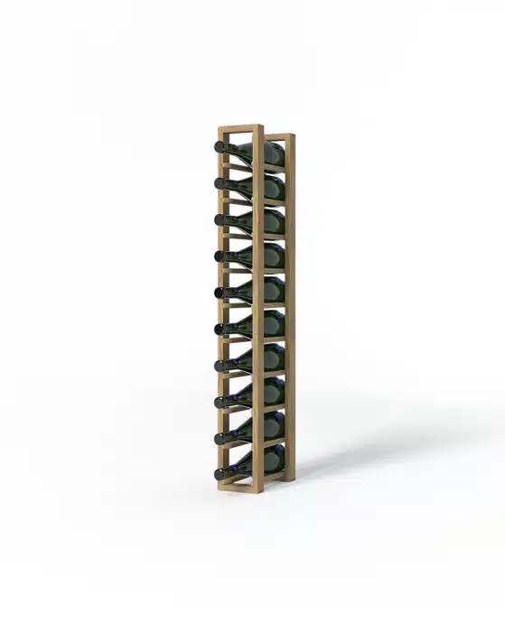 Freestanding modular wine rack for magnum bottles, easy to stack to create complete arrangements. Wall mounting with an anchor for more solidity (a 5/8” gap between the wall and the rack is required). To be used with bases BM-35 or BM-96 for more stability and a neat finish.