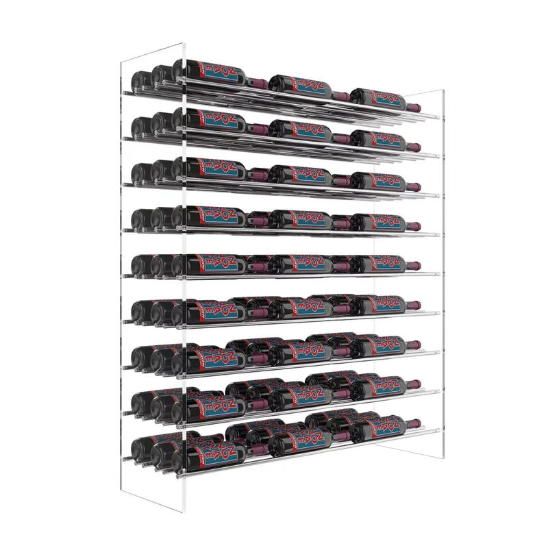 Standing just under 4 feet tall, the unit is compact yet highly expandable. Its transparent sides enhance visibility and allow for creative enhancements such as LED lighting. This rack is perfect for modern cellars, kitchen displays, or boutique wine shops seeking a clean, sophisticated look.