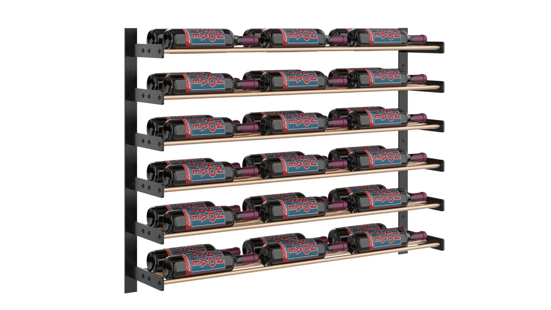 The Wine Wall 30 3C is a 6-bottle tall wall-mounted wine rack that can anchor a small wall or be lined up with other Wine Wall heights to create a custom-sized display to fit your space.