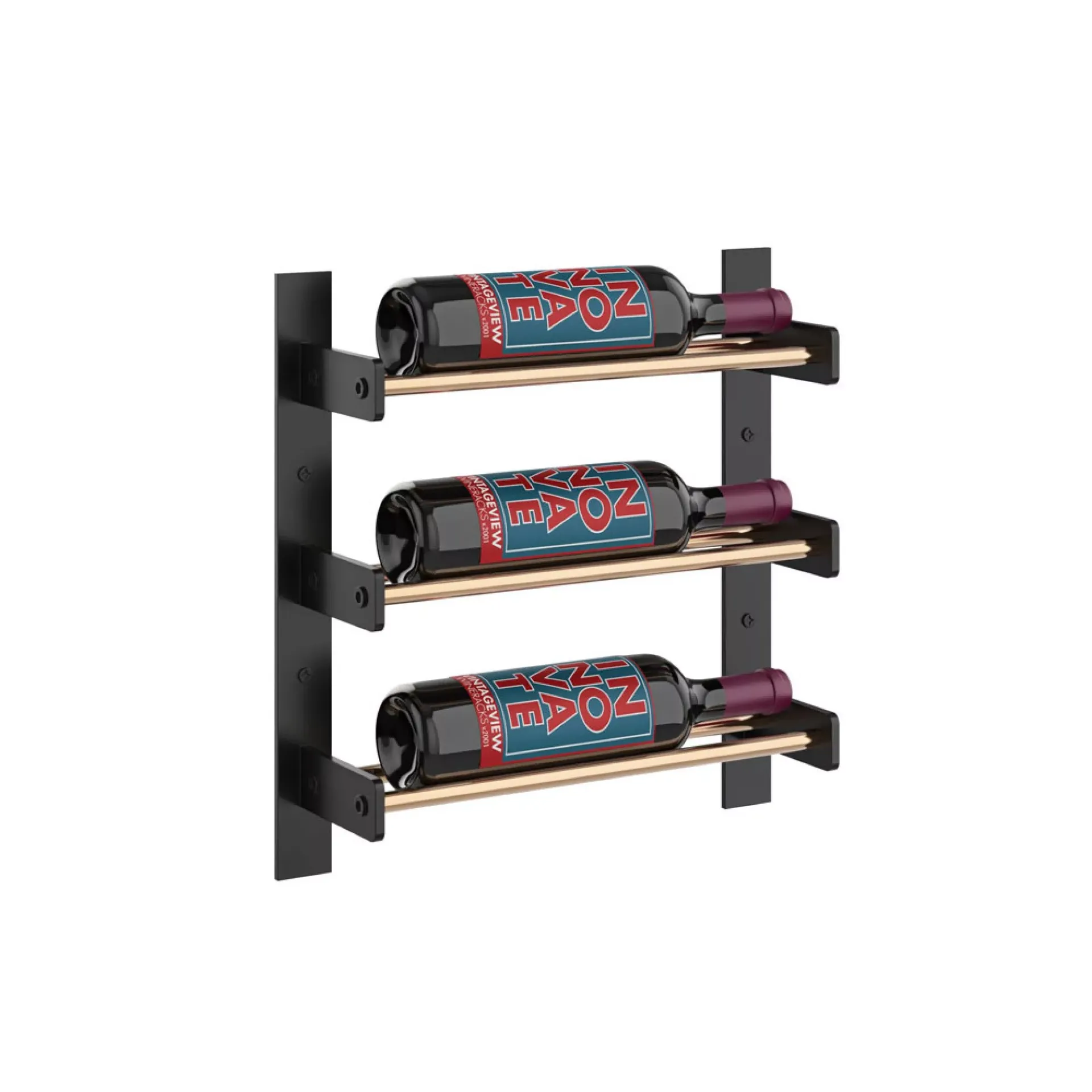 The Wine Wall 15 1C is a 3-bottle tall x 1 bottle wide wine rack that stands on its own as an amazing wall-mounted wine display and can be lined up with other heights to create a custom-sized display to fit your space.