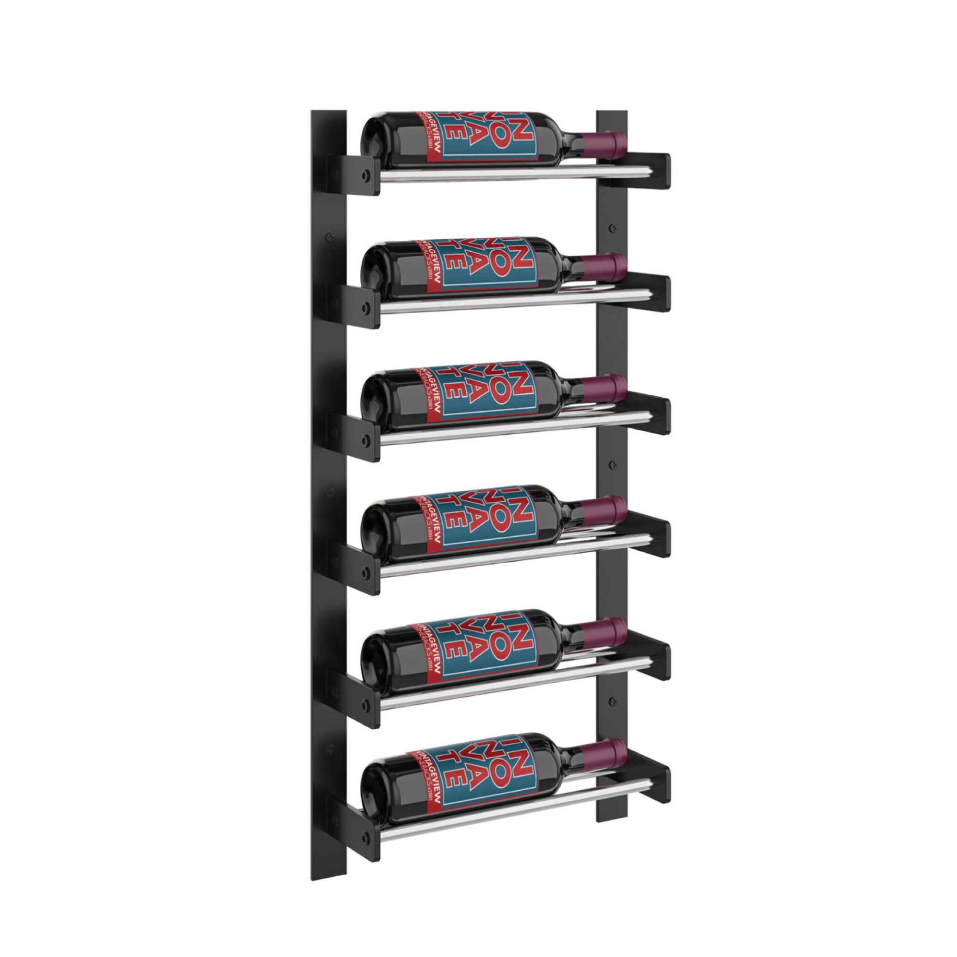 The Wine Wall 30 is a 6-bottle tall x 1 bottle wide wine rack that stands on its own as an amazing wall-mounted wine display and can be lined up with other heights to create a custom-sized display to fit your space.