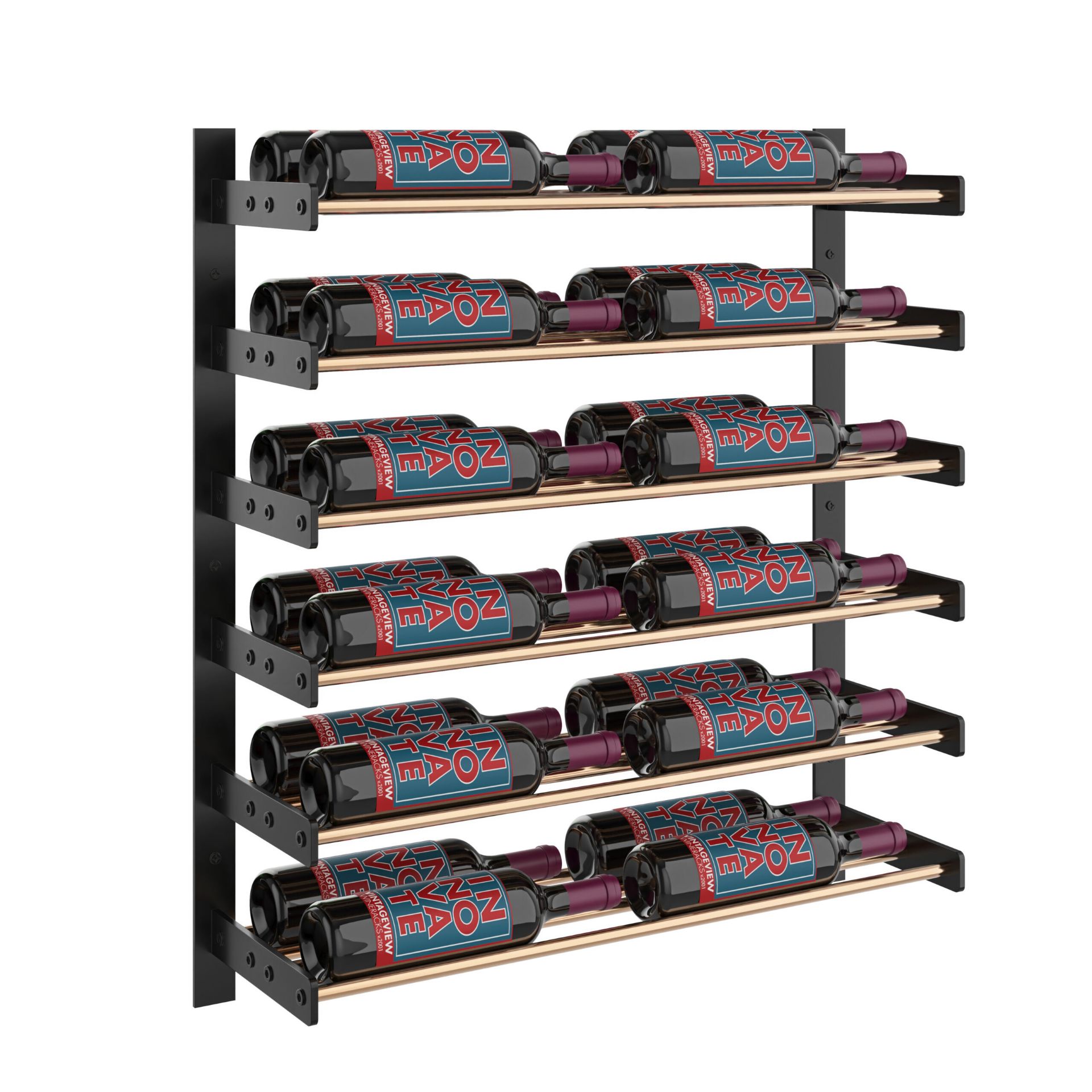 The Evolution Wine Wall system is a sophisticated modular wine rack that blends contemporary label-forward design with smart functionality perfect for home and commercial wall-mounted storage projects, small to large. This stylish system features increased vertical spacing to allow for enhanced visual pass through to other rooms, upgraded wall treatments, and more. It holds standard, Champagne or Pinot Noir bottles — all in the same row.