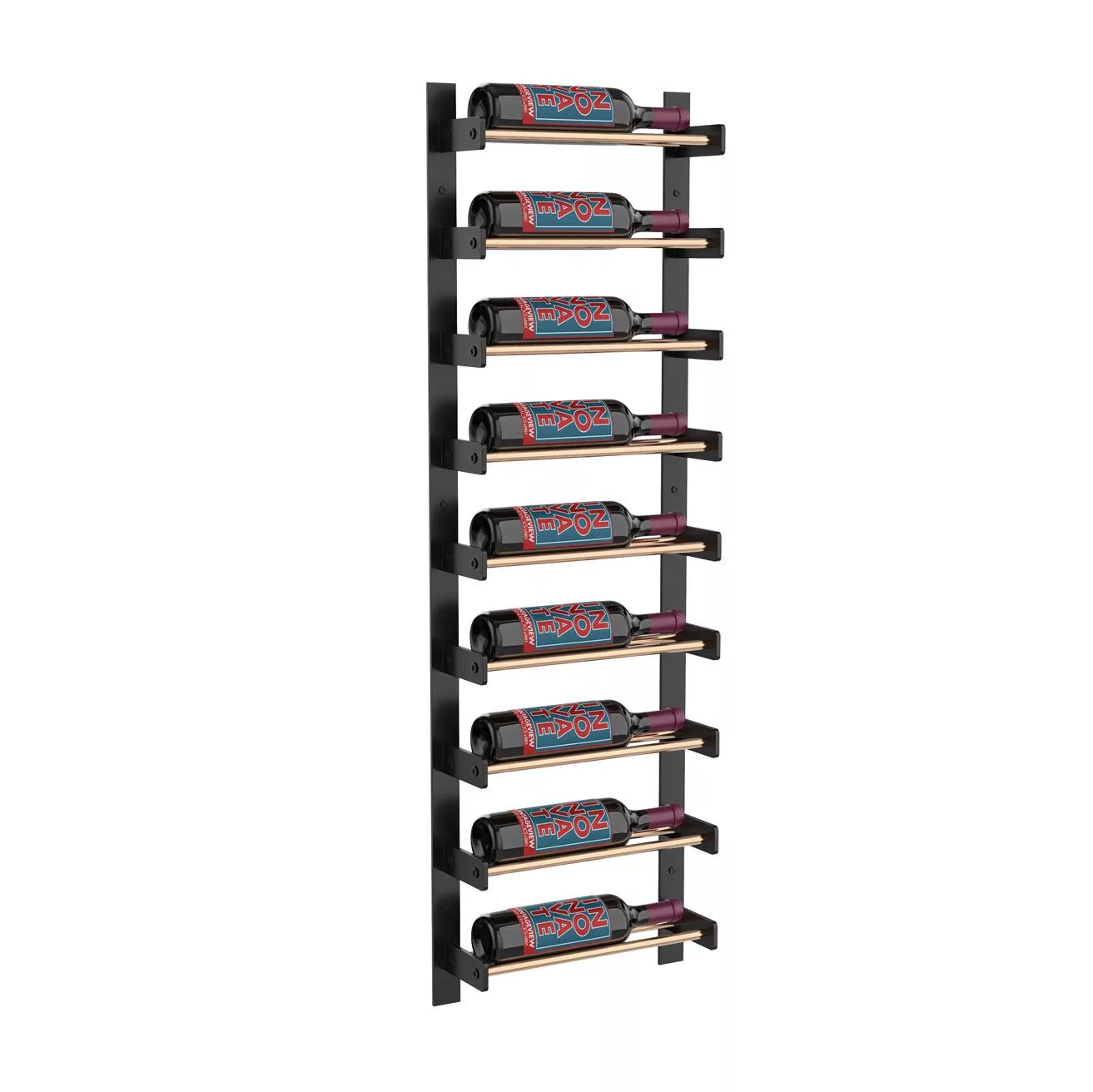The Wine Wall 45 is a 9-bottle tall x 1 bottle wide wine rack that stands on its own as an amazing wall-mounted wine display and can be lined up with other heights to create a custom-sized display to fit your space.