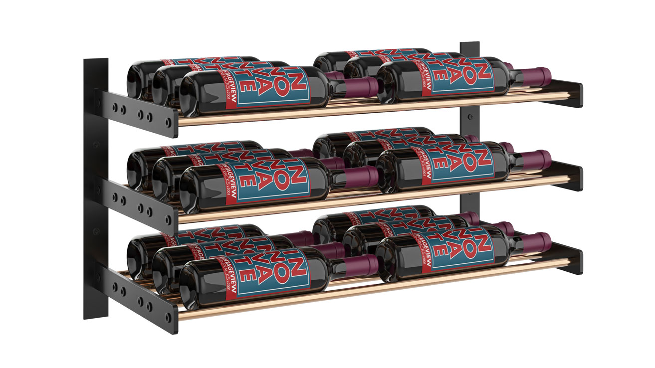 The Evolution Wine Wall system is a sophisticated modular wine rack that blends contemporary label-forward design with smart functionality perfect for home and commercial wall-mounted storage projects, small to large. This stylish system features increased vertical spacing to allow for enhanced visual pass through to other rooms, upgraded wall treatments, and more. It holds standard, Champagne or Pinot Noir bottles — all in the same row.
