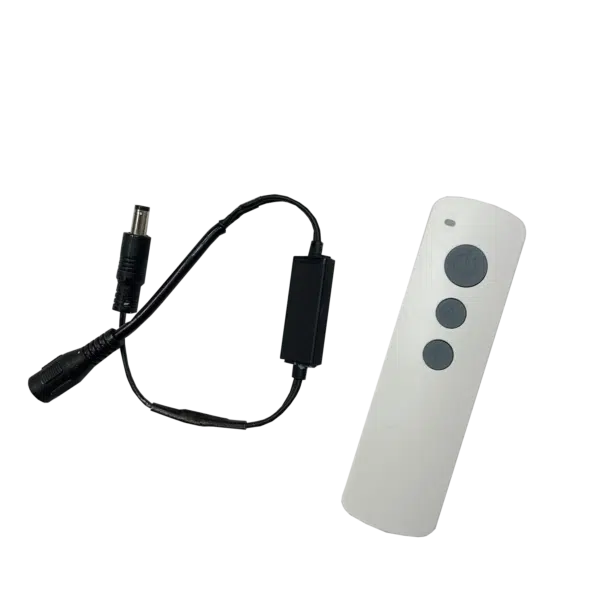 Remote control for lighting intensity. Preset intensity at 25, 50 or 100% and several different lighting modes and speeds