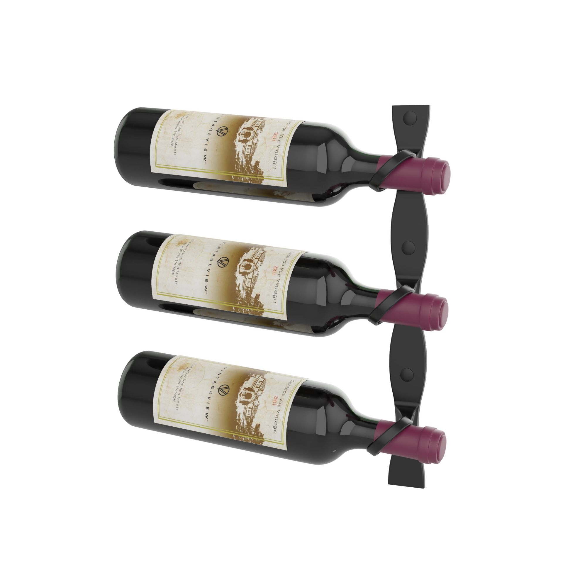 The Helix Single 15 is an innovative three-bottle wine rack that holds standard, Champagne, and magnum bottles on a wall or post as if floating on air. The superior design of VintageView’s wall-mounted wine rack offers maximum strength and efficiency, with elegant curves to add additional visual interest. This wine rack looks almost as good without the bottle.