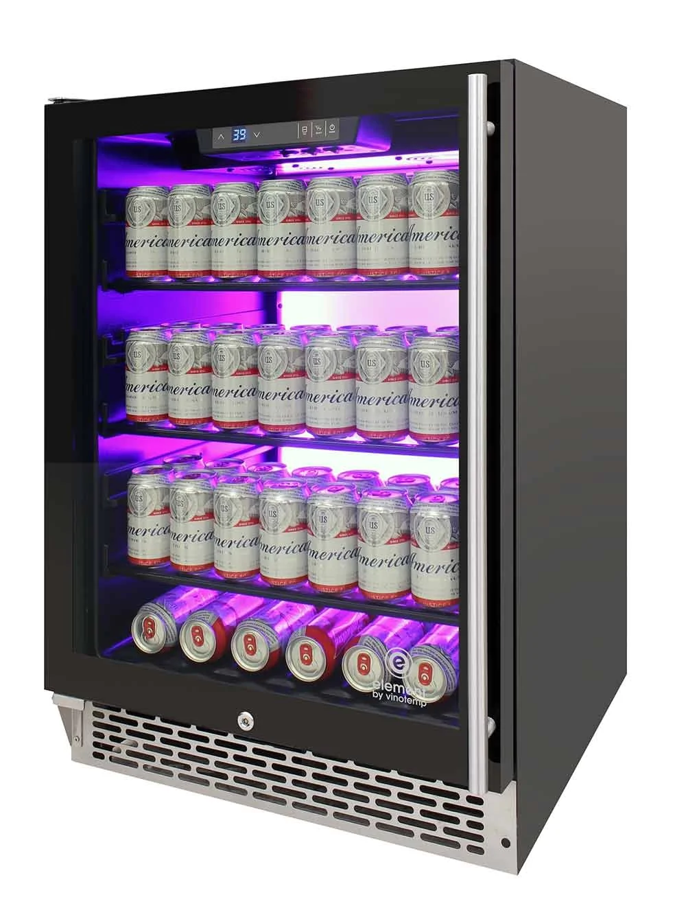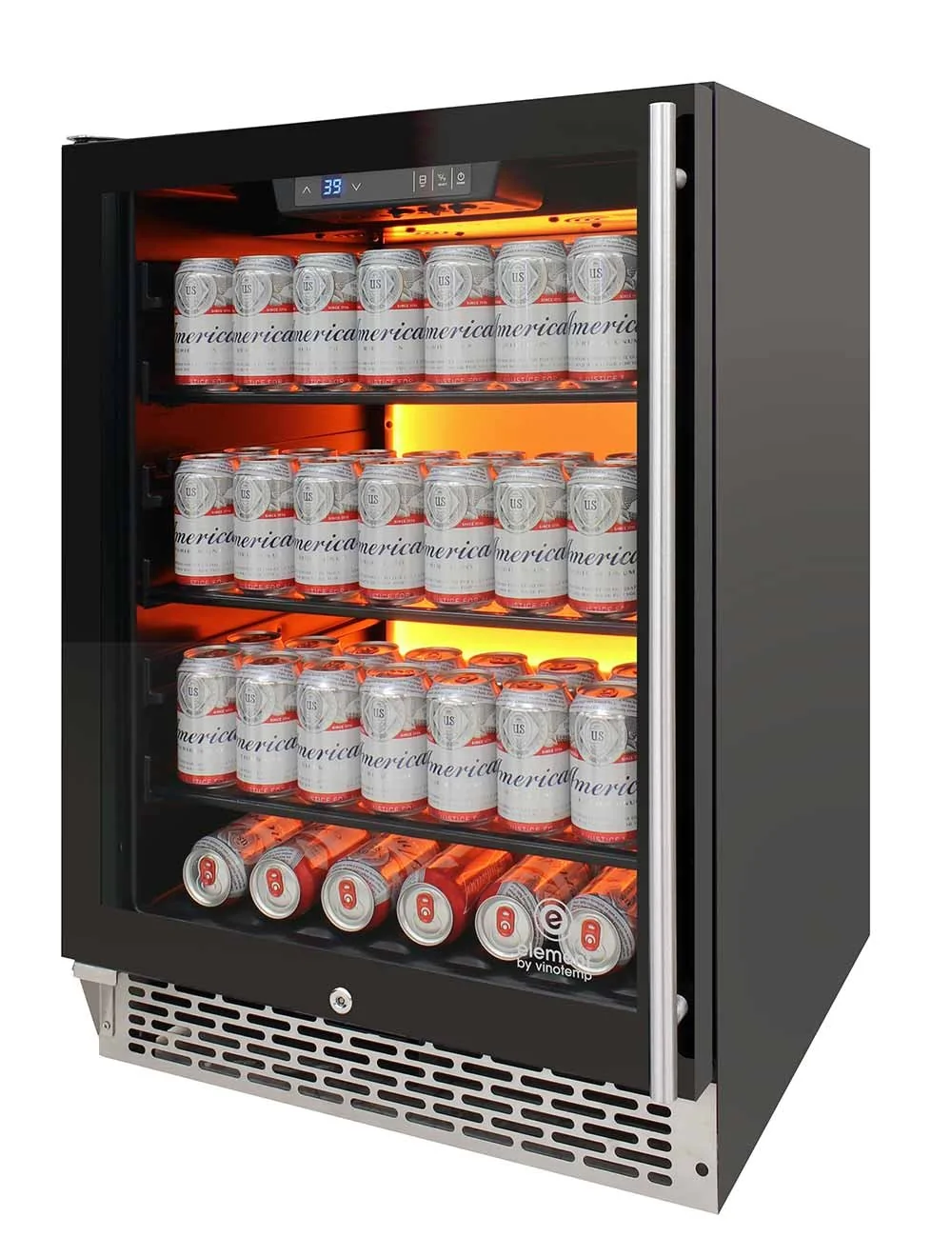 Sorry - this product is no longer availablePrivate Reserve 117-Can Backlit Panel 54 Commercial Beverage CoolerVinotemp's Private Reserve Series 117 Can Backlit Panel Commercial Beverage CoolerSKU: EL-54BCCOMM-L $2,998.00 Qty: Buy Now Ship toSelect countryUnited StatesCanadaAfghanistanAlbaniaAlgeriaAmerican SamoaAndorraAngolaAnguillaAntarcticaAntigua and BarbudaArgentinaArmeniaArubaAustraliaAustriaAzerbaijanBahamasBahrainBangladeshBarbadosBelarusBelgiumBelizeBeninBermudaBhutanBoliviaBosnia and HerzegowinaBotswanaBouvet IslandBrazilBritish Indian Ocean TerritoryBrunei DarussalamBulgariaBurkina FasoBurundiCambodiaCameroonCape VerdeCayman IslandsCentral African RepublicChadChileChinaChristmas IslandCocos (Keeling) IslandsColombiaComorosCongoCook IslandsCosta RicaCote D'IvoireCroatiaCubaCyprusCzech RepublicDenmarkDjiboutiDominicaDominican RepublicEcuadorEgyptEl SalvadorEquatorial GuineaEritreaEstoniaEthiopiaFalkland Islands (Malvinas)Faroe IslandsFijiFinlandFranceFrench GuianaFrench PolynesiaFrench Southern TerritoriesGabonGambiaGeorgiaGermanyGhanaGibraltarGreeceGreenlandGrenadaGuadeloupeGuamGuatemalaGuineaGuinea-bissauGuyanaHaitiHeard and Mc Donald IslandsHondurasHong KongHungaryIcelandIndiaIndonesiaIran (Islamic Republic of)IraqIrelandIsraelItalyJamaicaJapanJordanKazakhstanKenyaKiribatiKoreaKorea, Democratic People's Republic ofKuwaitKyrgyzstanLao People's Democratic RepublicLatviaLebanonLesothoLiberiaLibyan Arab JamahiriyaLiechtensteinLithuaniaLuxembourgMacauMacedoniaMadagascarMalawiMalaysiaMaldivesMaliMaltaMarshall IslandsMartiniqueMauritaniaMauritiusMayotteMexicoMicronesiaMoldovaMonacoMongoliaMontenegroMontserratMoroccoMozambiqueMyanmarNamibiaNauruNepalNetherlandsNetherlands AntillesNew CaledoniaNew ZealandNicaraguaNigerNigeriaNiueNorfolk IslandNorthern Mariana IslandsNorwayOmanPakistanPalauPanamaPapua New GuineaParaguayPeruPhilippinesPitcairnPolandPortugalPuerto RicoQatarReunionRomaniaRussiaRwandaSaint Kitts and NevisSaint LuciaSaint Vincent and the GrenadinesSamoaSan MarinoSao Tome and PrincipeSaudi ArabiaSenegalSerbiaSeychellesSierra LeoneSingaporeSlovakia (Slovak Republic)SloveniaSolomon IslandsSomaliaSouth AfricaSouth Georgia & South Sandwich IslandsSpainSri LankaSt. HelenaSt. Pierre and MiquelonSudanSurinameSvalbard and Jan Mayen IslandsSwazilandSwedenSwitzerlandSyrian Arab RepublicTaiwanTajikistanTanzaniaThailandTogoTokelauTongaTrinidad and TobagoTunisiaTurkeyTurkmenistanTurks and Caicos IslandsTuvaluUgandaUkraineUnited Arab EmiratesUnited KingdomUnited States minor outlying islandsUruguayUzbekistanVanuatuVatican City State (Holy See)VenezuelaViet NamVirgin Islands (British)Virgin Islands (U.S.)Wallis and Futuna IslandsWestern SaharaYemenZambiaZimbabwe *Other *Shipping MethodNameEstimated DeliveryPriceNo shipping optionsApply Custom wishlist OKAdd to wishlistAdd to compare listVinotemp's Private Reserve Series 117 Can Backlit Panel Commercial Beverage Cooler has innovative features such as glass shelves, interior Backlit™ in three different colors, and easy to use temperature settings. This beverage cooler is front venting with easy installation to build in and fit perfectly in any kitchen or bar area. The design forward beverage cooler features vibration-damping design to better protect its contents and is engineered for low energy consumption and low noise. Its patented interior Backlit™ panel has three different options - Heliotrope, Amber, and Vinotemp BioBlu™ (which helps reduce the growth of bacteria and mold) - and can be selected at any given time. Adjustable temperature range allows users to select a proper, customized storage and serving temperature for any beverages. Sturdy, flat glass shelves display beverage cans while the racks glide and extend forward, adding to the cooler's visual appeal and functionality. A digital LED temperature display makes temperatures easy-to-read and ensures beverages are being stored and served at the appropriate temperatures. Details:Left HingeCapacity: approx. 117 beverage cansApplication: Front exhaust for built-in or free standing installationsTemperature Range: 34°- 64°FAmbient Temperature Range: 41° - 100°F / Humidity 45~90%Control: Digital Temperature ControlPatented interior Backlit™ (baklīt) panel: Heliotrope, Amber, and Vinotemp BioBlu™ back-lit (U.S. Patent No. D868,849 S)3 flat glass shelvesShelves can be adjusted to accommodate more or less beverages.Indoor/Outdoor: Indoor onlySecurity Lock: YesRated Voltage: AC 115VFrequency: 60 HzDimensions: 23-1/2"W X 23-1/2"D X 34-3/8"HETL listed for residential and commercial useThis item is CEC CompliantOverviewReviewsContact UsVinotemp's Private Reserve Series 117 Can Backlit Panel Commercial Beverage Cooler has innovative features such as glass shelves, interior Backlit™ in three different colors, and easy to use temperature settings. This beverage cooler is front venting with easy installation to build in and fit perfectly in any kitchen or bar area. The design forward beverage cooler features vibration-damping design to better protect its contents and is engineered for low energy consumption and low noise. Its patented interior Backlit™ panel has three different options - Heliotrope, Amber, and Vinotemp BioBlu™ (which helps reduce the growth of bacteria and mold) - and can be selected at any given time. Adjustable temperature range allows users to select a proper, customized storage and serving temperature for any beverages. Sturdy, flat glass shelves display beverage cans while the racks glide and extend forward, adding to the cooler's visual appeal and functionality. A digital LED temperature display makes temperatures easy-to-read and ensures beverages are being stored and served at the appropriate temperatures. Details:Left HingeCapacity: approx. 117 beverage cansApplication: Front exhaust for built-in or free standing installationsTemperature Range: 34°- 64°FAmbient Temperature Range: 41° - 100°F / Humidity 45~90%Control: Digital Temperature ControlPaten