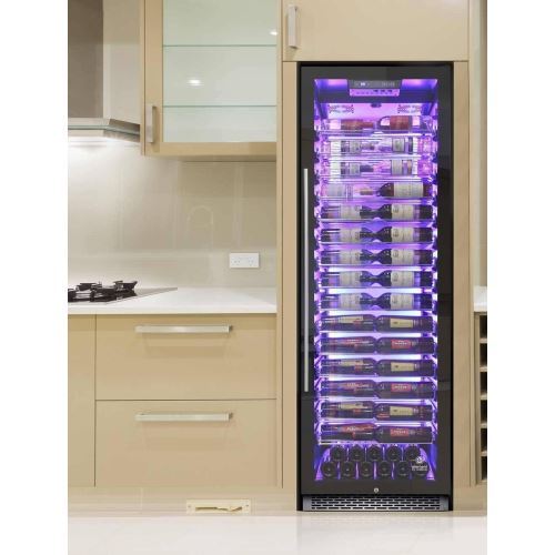 Sorry - this product is no longer availablePrivate Reserve 141-Bottle Backlit Panel 168 Single-Zone Wine CoolerVinotemp's Private Reserve Series 141-Bottle wine cooler has innovative features such as telescopic shelves, label forward wine bottle display, interior Backlit in three different colors, and LED side lighting to maximize your display capability Hinge * Right Hinged (Door Opens Left To Right) EL-168COMM Left Hinged (Door Opens Right to Left) EL-168COMM-L $5,599.00 Qty: Buy Now Ship toSelect countryUnited StatesCanadaAfghanistanAlbaniaAlgeriaAmerican SamoaAndorraAngolaAnguillaAntarcticaAntigua and BarbudaArgentinaArmeniaArubaAustraliaAustriaAzerbaijanBahamasBahrainBangladeshBarbadosBelarusBelgiumBelizeBeninBermudaBhutanBoliviaBosnia and HerzegowinaBotswanaBouvet IslandBrazilBritish Indian Ocean TerritoryBrunei DarussalamBulgariaBurkina FasoBurundiCambodiaCameroonCape VerdeCayman IslandsCentral African RepublicChadChileChinaChristmas IslandCocos (Keeling) IslandsColombiaComorosCongoCook IslandsCosta RicaCote D'IvoireCroatiaCubaCyprusCzech RepublicDenmarkDjiboutiDominicaDominican RepublicEcuadorEgyptEl SalvadorEquatorial GuineaEritreaEstoniaEthiopiaFalkland Islands (Malvinas)Faroe IslandsFijiFinlandFranceFrench GuianaFrench PolynesiaFrench Southern TerritoriesGabonGambiaGeorgiaGermanyGhanaGibraltarGreeceGreenlandGrenadaGuadeloupeGuamGuatemalaGuineaGuinea-bissauGuyanaHaitiHeard and Mc Donald IslandsHondurasHong KongHungaryIcelandIndiaIndonesiaIran (Islamic Republic of)IraqIrelandIsraelItalyJamaicaJapanJordanKazakhstanKenyaKiribatiKoreaKorea, Democratic People's Republic ofKuwaitKyrgyzstanLao People's Democratic RepublicLatviaLebanonLesothoLiberiaLibyan Arab JamahiriyaLiechtensteinLithuaniaLuxembourgMacauMacedoniaMadagascarMalawiMalaysiaMaldivesMaliMaltaMarshall IslandsMartiniqueMauritaniaMauritiusMayotteMexicoMicronesiaMoldovaMonacoMongoliaMontenegroMontserratMoroccoMozambiqueMyanmarNamibiaNauruNepalNetherlandsNetherlands AntillesNew CaledoniaNew ZealandNicaraguaNigerNigeriaNiueNorfolk IslandNorthern Mariana IslandsNorwayOmanPakistanPalauPanamaPapua New GuineaParaguayPeruPhilippinesPitcairnPolandPortugalPuerto RicoQatarReunionRomaniaRussiaRwandaSaint Kitts and NevisSaint LuciaSaint Vincent and the GrenadinesSamoaSan MarinoSao Tome and PrincipeSaudi ArabiaSenegalSerbiaSeychellesSierra LeoneSingaporeSlovakia (Slovak Republic)SloveniaSolomon IslandsSomaliaSouth AfricaSouth Georgia & South Sandwich IslandsSpainSri LankaSt. HelenaSt. Pierre and MiquelonSudanSurinameSvalbard and Jan Mayen IslandsSwazilandSwedenSwitzerlandSyrian Arab RepublicTaiwanTajikistanTanzaniaThailandTogoTokelauTongaTrinidad and TobagoTunisiaTurkeyTurkmenistanTurks and Caicos IslandsTuvaluUgandaUkraineUnited Arab EmiratesUnited KingdomUnited States minor outlying islandsUruguayUzbekistanVanuatuVatican City State (Holy See)VenezuelaViet NamVirgin Islands (British)Virgin Islands (U.S.)Wallis and Futuna IslandsWestern SaharaYemenZambiaZimbabwe *Other *Shipping MethodNameEstimated DeliveryPriceNo shipping optionsApply Custom wishlist OKAdd to wishlistAdd to compare listVinotemp's Private Reserve Series 141-Bottle wine cooler has innovative features such as telescopic shelves, label forward wine bottle display, interior Backlit™ in three different colors, and LED side lighting to maximize your display capability. This Vinotemp wine refrigerator is front venting with easy installation to build in and fit perfectly in any kitchen or bar area. The commercial style wine cooler is an entertainer's delight with three different color options to display whatever mood fits. The design forward wine cooler features vibration-damping design to better protect its contents and is engineered for low energy consumption and low noise. Its patented interior Backlit™ panel has three different options - Heliotrope, Amber, and Vinotemp BioBlu™ (which helps reduce the growth of bacteria and mold) - and can be selected at any give time. Adjustable temperature range allows users to select a proper, customized storage and serving temperature for light or darker wines. Sturdy, stylish label forward VinBo™ Racks (patent pending) cradle bottles so the labels of wine stored are front facing while the racks glide and extend forward, adding to the cooler's visual appeal and function. A digital LED temperature display makes temperatures easy-to-read and ensures wine is being stored and served at the appropriate temperature. FEATURESCapacity: approx. 141 750ML Bordeaux bottles and may include bulk storageApplication: Front exhaust for built-in or free standing installationsTemperature Range: 41°- 64°FAmbient Temperature Range: 41° - 100°F / Humidity 45~90%Control: Digital Temperature ControlPatented interior Backlit™ (baklīt) panel: Heliotrope, Amber, and Vinotemp BioBlu™ back-lit (U.S. Patent No. D868849)Label forward, VinBo™ Racks (patent pending)Shelves can be adjusted to accommodate more or less bottles.Top rack and bottom storage compartment can fit larger style bottles like Champagne and Magnum.Comes with a charcoal filterIndoor/Outdoor: Indoor onlySecurity Lock: YesRated Voltage: AC 115VFrequency: 60 HzAlso available with a Left HingeETL listed for residential and commercial useDimensions: 23 7/8"W X 28 3/4"D X 73 7/8"H OverviewReviewsContact UsVinotemp's Private Reserve Series 141-Bottle wine cooler has innovative features such as telescopic shelves, label forward wine bottle display, interior Backlit™ in three different colors, and LED side lighting to maximize your display capability. This Vinotemp wine refrigerator is front venting with easy installation to build in and fit perfectly in any kitchen or bar area. The commercial style wine cooler is an entertainer's delight with three different color options to display whatever mood fits. The design forward wine cooler features vibration-damping design to better protect its contents and is engineered for low energy consumption and low noise. Its patented interior Backlit™ p