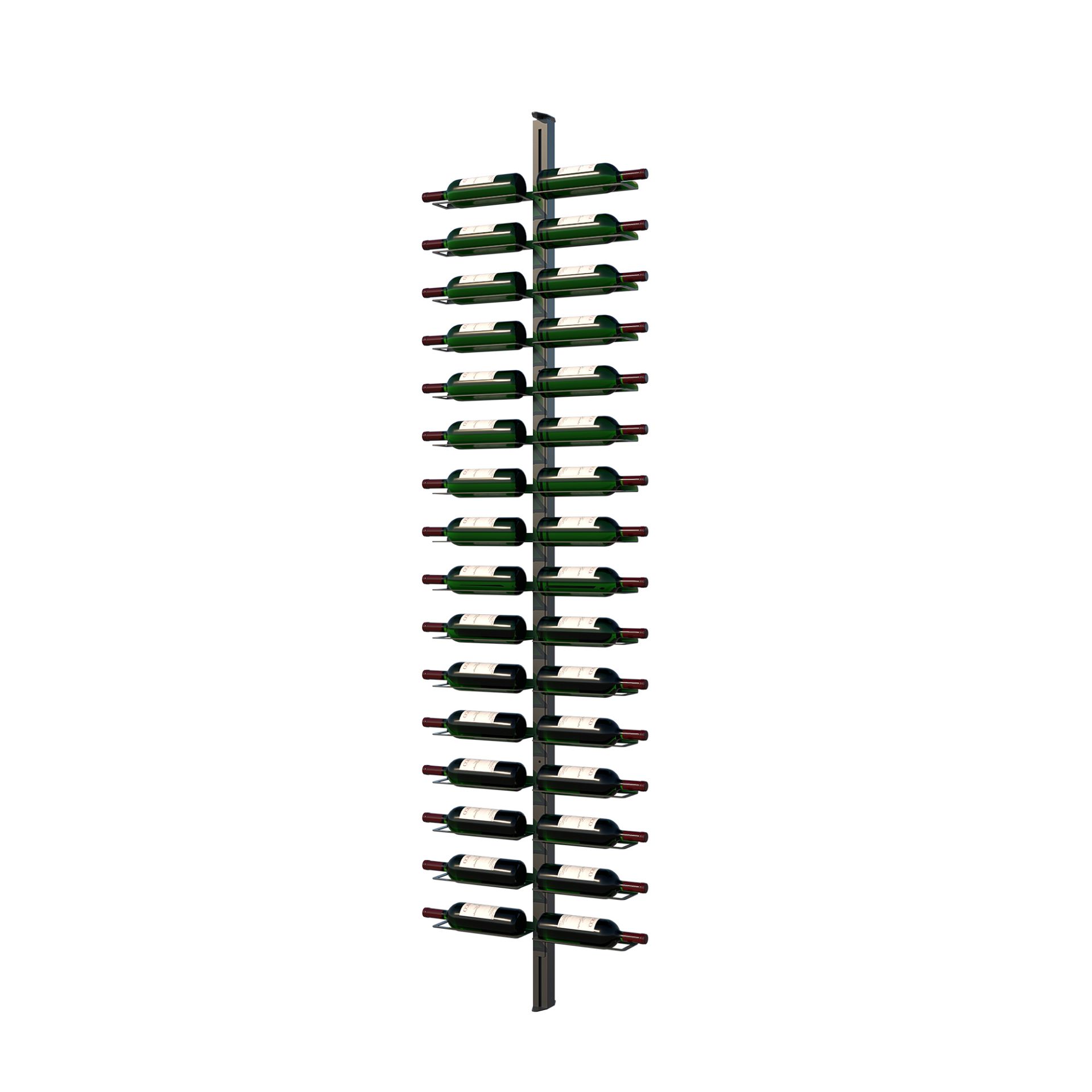 Featuring a minimalist, contemporary design, the RTM Duo is a bottle column designed to bring a touch of elegance to your space. It comprises a floor-to-ceiling stud plus two RTM16 modules stacked on the other, offering a versatile solution for storing wine bottles. With a depth designed to accommodate one bottle, it can be used independently or as a complement to an existing wine cellar.