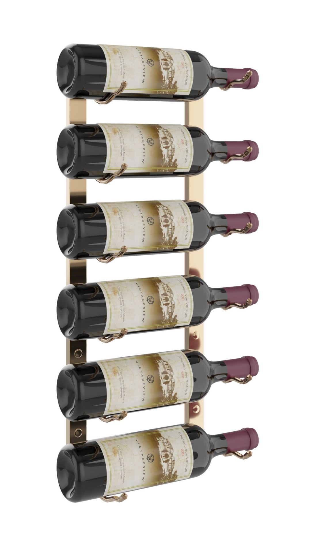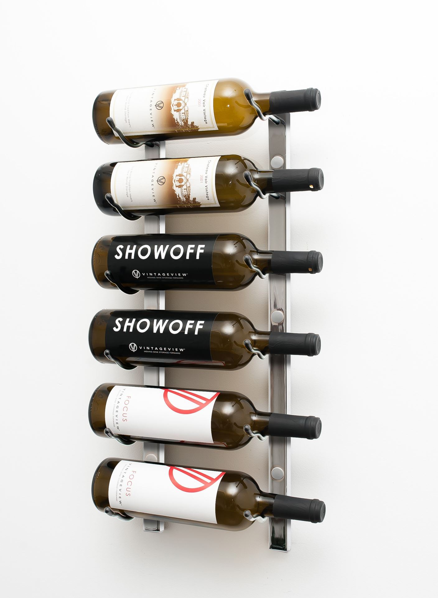 6- bottle, W Series 2′ Wall Mounted Metal Wine RackWS21, 6 Bottle Wall Mounted Wine Rack.Manufacturer: Vintage View wine racks Finish * Satin Black, WS21-K Nickel , WS21-P Chrome Lux, WS21-CH [+$99.00] Golden Bronze Lux, WS21-GB [+$121.00] Gun Metal Lux WS21-GM [+$121.00] $116.00 Qty: Buy Now Ship toSelect countryUnited StatesCanadaAfghanistanAlbaniaAlgeriaAmerican SamoaAndorraAngolaAnguillaAntarcticaAntigua and BarbudaArgentinaArmeniaArubaAustraliaAustriaAzerbaijanBahamasBahrainBangladeshBarbadosBelarusBelgiumBelizeBeninBermudaBhutanBoliviaBosnia and HerzegowinaBotswanaBouvet IslandBrazilBritish Indian Ocean TerritoryBrunei DarussalamBulgariaBurkina FasoBurundiCambodiaCameroonCape VerdeCayman IslandsCentral African RepublicChadChileChinaChristmas IslandCocos (Keeling) IslandsColombiaComorosCongoCook IslandsCosta RicaCote D'IvoireCroatiaCubaCyprusCzech RepublicDenmarkDjiboutiDominicaDominican RepublicEcuadorEgyptEl SalvadorEquatorial GuineaEritreaEstoniaEthiopiaFalkland Islands (Malvinas)Faroe IslandsFijiFinlandFranceFrench GuianaFrench PolynesiaFrench Southern TerritoriesGabonGambiaGeorgiaGermanyGhanaGibraltarGreeceGreenlandGrenadaGuadeloupeGuamGuatemalaGuineaGuinea-bissauGuyanaHaitiHeard and Mc Donald IslandsHondurasHong KongHungaryIcelandIndiaIndonesiaIran (Islamic Republic of)IraqIrelandIsraelItalyJamaicaJapanJordanKazakhstanKenyaKiribatiKoreaKorea, Democratic People's Republic ofKuwaitKyrgyzstanLao People's Democratic RepublicLatviaLebanonLesothoLiberiaLibyan Arab JamahiriyaLiechtensteinLithuaniaLuxembourgMacauMacedoniaMadagascarMalawiMalaysiaMaldivesMaliMaltaMarshall IslandsMartiniqueMauritaniaMauritiusMayotteMexicoMicronesiaMoldovaMonacoMongoliaMontenegroMontserratMoroccoMozambiqueMyanmarNamibiaNauruNepalNetherlandsNetherlands AntillesNew CaledoniaNew ZealandNicaraguaNigerNigeriaNiueNorfolk IslandNorthern Mariana IslandsNorwayOmanPakistanPalauPanamaPapua New GuineaParaguayPeruPhilippinesPitcairnPolandPortugalPuerto RicoQatarReunionRomaniaRussiaRwandaSaint Kitts and NevisSaint LuciaSaint Vincent and the GrenadinesSamoaSan MarinoSao Tome and PrincipeSaudi ArabiaSenegalSerbiaSeychellesSierra LeoneSingaporeSlovakia (Slovak Republic)SloveniaSolomon IslandsSomaliaSouth AfricaSouth Georgia & South Sandwich IslandsSpainSri LankaSt. HelenaSt. Pierre and MiquelonSudanSurinameSvalbard and Jan Mayen IslandsSwazilandSwedenSwitzerlandSyrian Arab RepublicTaiwanTajikistanTanzaniaThailandTogoTokelauTongaTrinidad and TobagoTunisiaTurkeyTurkmenistanTurks and Caicos IslandsTuvaluUgandaUkraineUnited Arab EmiratesUnited KingdomUnited States minor outlying islandsUruguayUzbekistanVanuatuVatican City State (Holy See)VenezuelaViet NamVirgin Islands (British)Virgin Islands (U.S.)Wallis and Futuna IslandsWestern SaharaYemenZambiaZimbabwe *Other *Shipping MethodNameEstimated DeliveryPriceNo shipping optionsApply Custom wishlist OKAdd to wishlistAdd to compare listDescription: This 6 bottle metal wine rack can be fastened to almost any wall. It features sturdy metal construction and artfully displays your bottles with the labels visible for show. Features: Metal construction.Wall mount installationCapacity: 6 bottles, Single deepDimensions: 24”H x 13”W x 5.5”DSpec Sheet For: WS21: holds 6 bottles CANADIAN CUSTOMERS : Please note that the shipping rate on this product is applicable regardless if you wish to pick up at wine cave or have it delivered to your door. The delivery price indicated includes the cost of freight, brokerage and all importation fees.OverviewReviewsContact UsDescription: This 6 bottle metal wine rack can be fastened to almost any wall. It features sturdy metal construction and artfully displays your bottles with the labels visible for show. Features: Metal construction.Wall mount installationCapacity: 6 bottles, Single deepDimensions: 24”H x 13”W x 5.5”DSpec Sheet For: WS21: holds 6 bottles CANADIAN CUSTOMERS : Please note that the shipping rate on this product is applicable regardless if you wish to pick up at wine cave or have it delivered to your door. The delivery price indicated includes the cost of freight, brokerage and all importation fees.Write your own reviewOnly registered users can write reviewsReview title: * Review text: * Rating:Bad ExcellentSubmit reviewYour name * Your email * Enquiry * SubmitCustomers who bought this item also bought 12 Bottles, W Series 4′ Wall Mounted Metal Wine RackWS41, 12 Bottle Wall Mounted Wine Rack$207.00Buy Now Add to compare list Custom wishlist OKAdd to wishlist W Series Backer Bar for FLOOR-TO-CEILING FrameBACKER FOR FCF(set of two). The W Series Frame Backer Bar, when used in connection with a W Series Floor To Ceiling Mounted Frame, allows for one-sided wine bottle installations.$94.00Buy Now Add to compare list Custom wishlist OKAdd to wishlist W Series FLOOR-TO-CEILING Frame 10'FCF-HD-The W Series Wine Rack FLOOR-TO-CEILING Frame 10' allows the installation of our ground-breaking label forward racks through ceiling and floor mounting to create floating wine rack displays in commercial and residential projects.$395.00Buy Now Add to compare list Custom wishlist OKAdd to wishlist W Series Bottle Height (wall mounted metal wine rack) One BottleThe W Series Bottle Height is a 4″ tall, wall mounted wine rack that creates unparalleled versatility for the W Series by allowing the the extension of any vertical column, one bottle height at a time.$44.00Buy Now Add to compare list Custom wishlist OKAdd to wishlist