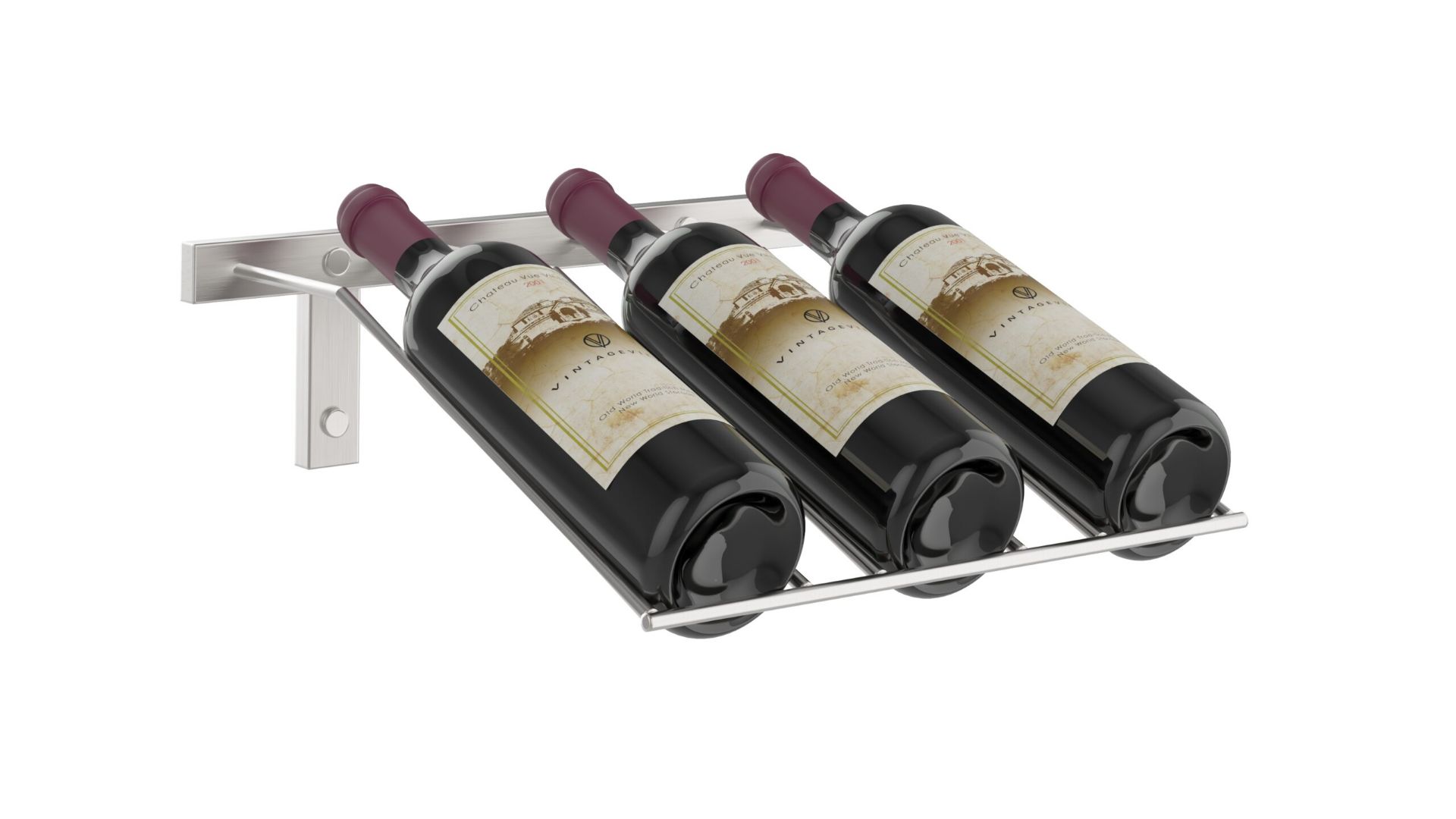 W Series Presentation Row, 3 bottle metal wine rack,WS-PR1C, Wall Mounted Presentation Wine RackManufacturer: Vintage View wine racks Finish * Satin Black, WS-PR1C-K Nickel, WS-PR1C-P Chrome Lux, WS-PR1C-CH [+$21.00] Gun Metal Lux-WS-PR1C-GM [+$31.00] Golden Bronze Lux- WS-PR1C-GB [+$31.00] $99.00 Qty: Buy Now Ship toSelect countryUnited StatesCanadaAfghanistanAlbaniaAlgeriaAmerican SamoaAndorraAngolaAnguillaAntarcticaAntigua and BarbudaArgentinaArmeniaArubaAustraliaAustriaAzerbaijanBahamasBahrainBangladeshBarbadosBelarusBelgiumBelizeBeninBermudaBhutanBoliviaBosnia and HerzegowinaBotswanaBouvet IslandBrazilBritish Indian Ocean TerritoryBrunei DarussalamBulgariaBurkina FasoBurundiCambodiaCameroonCape VerdeCayman IslandsCentral African RepublicChadChileChinaChristmas IslandCocos (Keeling) IslandsColombiaComorosCongoCook IslandsCosta RicaCote D'IvoireCroatiaCubaCyprusCzech RepublicDenmarkDjiboutiDominicaDominican RepublicEcuadorEgyptEl SalvadorEquatorial GuineaEritreaEstoniaEthiopiaFalkland Islands (Malvinas)Faroe IslandsFijiFinlandFranceFrench GuianaFrench PolynesiaFrench Southern TerritoriesGabonGambiaGeorgiaGermanyGhanaGibraltarGreeceGreenlandGrenadaGuadeloupeGuamGuatemalaGuineaGuinea-bissauGuyanaHaitiHeard and Mc Donald IslandsHondurasHong KongHungaryIcelandIndiaIndonesiaIran (Islamic Republic of)IraqIrelandIsraelItalyJamaicaJapanJordanKazakhstanKenyaKiribatiKoreaKorea, Democratic People's Republic ofKuwaitKyrgyzstanLao People's Democratic RepublicLatviaLebanonLesothoLiberiaLibyan Arab JamahiriyaLiechtensteinLithuaniaLuxembourgMacauMacedoniaMadagascarMalawiMalaysiaMaldivesMaliMaltaMarshall IslandsMartiniqueMauritaniaMauritiusMayotteMexicoMicronesiaMoldovaMonacoMongoliaMontenegroMontserratMoroccoMozambiqueMyanmarNamibiaNauruNepalNetherlandsNetherlands AntillesNew CaledoniaNew ZealandNicaraguaNigerNigeriaNiueNorfolk IslandNorthern Mariana IslandsNorwayOmanPakistanPalauPanamaPapua New GuineaParaguayPeruPhilippinesPitcairnPolandPortugalPuerto RicoQatarReunionRomaniaRussiaRwandaSaint Kitts and NevisSaint LuciaSaint Vincent and the GrenadinesSamoaSan MarinoSao Tome and PrincipeSaudi ArabiaSenegalSerbiaSeychellesSierra LeoneSingaporeSlovakia (Slovak Republic)SloveniaSolomon IslandsSomaliaSouth AfricaSouth Georgia & South Sandwich IslandsSpainSri LankaSt. HelenaSt. Pierre and MiquelonSudanSurinameSvalbard and Jan Mayen IslandsSwazilandSwedenSwitzerlandSyrian Arab RepublicTaiwanTajikistanTanzaniaThailandTogoTokelauTongaTrinidad and TobagoTunisiaTurkeyTurkmenistanTurks and Caicos IslandsTuvaluUgandaUkraineUnited Arab EmiratesUnited KingdomUnited States minor outlying islandsUruguayUzbekistanVanuatuVatican City State (Holy See)VenezuelaViet NamVirgin Islands (British)Virgin Islands (U.S.)Wallis and Futuna IslandsWestern SaharaYemenZambiaZimbabwe *Other *Shipping MethodNameEstimated DeliveryPriceNo shipping optionsApply Custom wishlist OKAdd to wishlistAdd to compare listDescription: This Wall Mounted Presentation Wine Rack features sturdy metal construction and artfully displays your bottles with the labels visible for show. Multiples can be bought to showcase a larger selection of wines. Features: Wall mounted presentation wine rackMetal construction (Satin Black or Platinum)Dimention:W:12-1/2″ (32cm)H: 4″ (11cm)D:13″ (34cm)Bottle Capacity: 3 BottlesOverviewReviewsContact UsDescription: This Wall Mounted Presentation Wine Rack features sturdy metal construction and artfully displays your bottles with the labels visible for show. Multiples can be bought to showcase a larger selection of wines. Features: Wall mounted presentation wine rackMetal construction (Satin Black or Platinum)Dimention:W:12-1/2″ (32cm)H: 4″ (11cm)D:13″ (34cm)Bottle Capacity: 3 BottlesWrite your own reviewOnly registered users can write reviewsReview title: * Review text: * Rating:Bad ExcellentSubmit reviewYour name * Your email * Enquiry * SubmitCustomers who bought this item also bought 12 Bottles, W Series 4′ Wall Mounted Metal Wine RackWS41, 12 Bottle Wall Mounted Wine Rack$207.00Buy Now Add to compare list Custom wishlist OKAdd to wishlist W Series FLOOR-TO-CEILING Frame 10'FCF-HD-The W Series Wine Rack FLOOR-TO-CEILING Frame 10' allows the installation of our ground-breaking label forward racks through ceiling and floor mounting to create floating wine rack displays in commercial and residential projects.$395.00Buy Now Add to compare list Custom wishlist OKAdd to wishlist Evolution Wine Wall Post (floor-to-ceiling wine rack support)The Evolution Wine Wall Post is a patent-pending steel frame system that creates remarkable wine displays, in floor-to-ceiling configuration, at heights up to 15 feet.$209.00Buy Now Add to compare list Custom wishlist OKAdd to wishlist 6- bottle, W Series 2′ Wall Mounted Metal Wine RackWS21, 6 Bottle Wall Mounted Wine Rack.$116.00Buy Now Add to compare list Custom wishlist OKAdd to wishlist