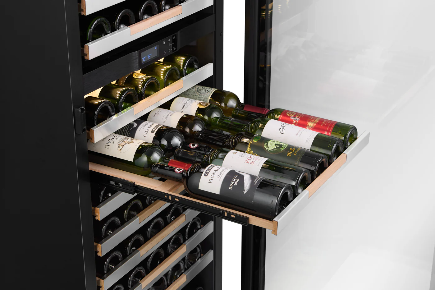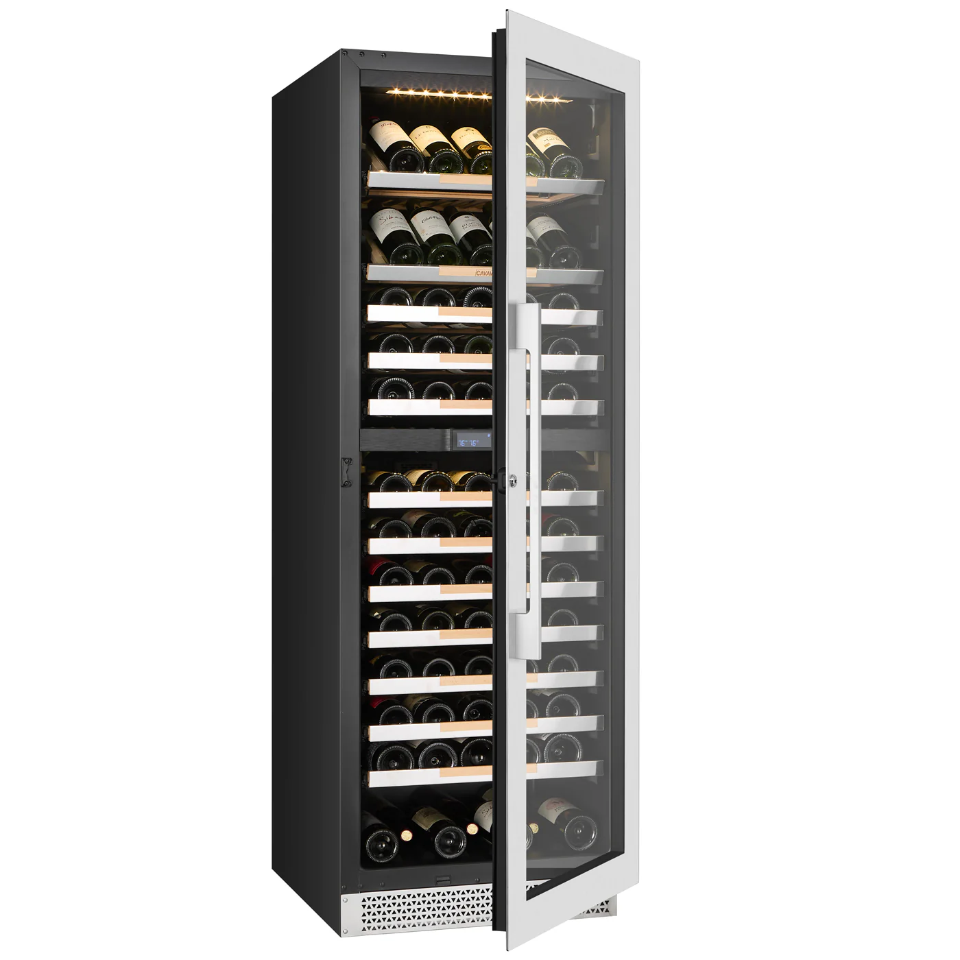 Cavavin, VINOA 133-bottle Wine Cabinet - Dual zoneCavavin, VINOA V-133WDZ - A premium solution for storing and displaying up to 133 bottles, featuring two independent temperature zones, units are equipped with a copper evaporat. Hinge * Right Hinged (Door Opens Left To Right) V-133WDZ Left Hinged (Door Opens Right to Left) V-133WDZ L $4,099.00 Qty: Buy Now Ship toSelect countryUnited StatesCanadaAfghanistanAlbaniaAlgeriaAmerican SamoaAndorraAngolaAnguillaAntarcticaAntigua and BarbudaArgentinaArmeniaArubaAustraliaAustriaAzerbaijanBahamasBahrainBangladeshBarbadosBelarusBelgiumBelizeBeninBermudaBhutanBoliviaBosnia and HerzegowinaBotswanaBouvet IslandBrazilBritish Indian Ocean TerritoryBrunei DarussalamBulgariaBurkina FasoBurundiCambodiaCameroonCape VerdeCayman IslandsCentral African RepublicChadChileChinaChristmas IslandCocos (Keeling) IslandsColombiaComorosCongoCook IslandsCosta RicaCote D'IvoireCroatiaCubaCyprusCzech RepublicDenmarkDjiboutiDominicaDominican RepublicEcuadorEgyptEl SalvadorEquatorial GuineaEritreaEstoniaEthiopiaFalkland Islands (Malvinas)Faroe IslandsFijiFinlandFranceFrench GuianaFrench PolynesiaFrench Southern TerritoriesGabonGambiaGeorgiaGermanyGhanaGibraltarGreeceGreenlandGrenadaGuadeloupeGuamGuatemalaGuineaGuinea-bissauGuyanaHaitiHeard and Mc Donald IslandsHondurasHong KongHungaryIcelandIndiaIndonesiaIran (Islamic Republic of)IraqIrelandIsraelItalyJamaicaJapanJordanKazakhstanKenyaKiribatiKoreaKorea, Democratic People's Republic ofKuwaitKyrgyzstanLao People's Democratic RepublicLatviaLebanonLesothoLiberiaLibyan Arab JamahiriyaLiechtensteinLithuaniaLuxembourgMacauMacedoniaMadagascarMalawiMalaysiaMaldivesMaliMaltaMarshall IslandsMartiniqueMauritaniaMauritiusMayotteMexicoMicronesiaMoldovaMonacoMongoliaMontenegroMontserratMoroccoMozambiqueMyanmarNamibiaNauruNepalNetherlandsNetherlands AntillesNew CaledoniaNew ZealandNicaraguaNigerNigeriaNiueNorfolk IslandNorthern Mariana IslandsNorwayOmanPakistanPalauPanamaPapua New GuineaParaguayPeruPhilippinesPitcairnPolandPortugalPuerto RicoQatarReunionRomaniaRussiaRwandaSaint Kitts and NevisSaint LuciaSaint Vincent and the GrenadinesSamoaSan MarinoSao Tome and PrincipeSaudi ArabiaSenegalSerbiaSeychellesSierra LeoneSingaporeSlovakia (Slovak Republic)SloveniaSolomon IslandsSomaliaSouth AfricaSouth Georgia & South Sandwich IslandsSpainSri LankaSt. HelenaSt. Pierre and MiquelonSudanSurinameSvalbard and Jan Mayen IslandsSwazilandSwedenSwitzerlandSyrian Arab RepublicTaiwanTajikistanTanzaniaThailandTogoTokelauTongaTrinidad and TobagoTunisiaTurkeyTurkmenistanTurks and Caicos IslandsTuvaluUgandaUkraineUnited Arab EmiratesUnited KingdomUnited States minor outlying islandsUruguayUzbekistanVanuatuVatican City State (Holy See)VenezuelaViet NamVirgin Islands (British)Virgin Islands (U.S.)Wallis and Futuna IslandsWestern SaharaYemenZambiaZimbabwe *Other *Shipping MethodNameEstimated DeliveryPriceNo shipping optionsApply Custom wishlist OKAdd to wishlistAdd to compare listDescriptionA premium solution for storing and presenting wine, with a capacity of 133 bottles (750 ml) and two independent temperature zones adjustable from 5 to 20 °C (41-68 °F). Product HighlightsSeamless stainless steel door frame, LOW-E double glazing, with reversible door and integrated lock for optimal security.LCD touchscreen for precise and easy control of each temperature zone.Three-color LED lighting (warm white, cool white or blue) highlights your collection.12 beech wood shelves (10 sliding + 2 display), 100% expandable for flexible organization.Quiet system (42 dB) and variable Embraco compressor, ensuring optimal and energy-efficient conservation (R-600a).Carbon filter and discreet ventilation guarantee a healthy atmosphere inside the cellar.Easy installation: built-in or freestanding depending on the space in your home.CSA certified for safety and meets North American requirements.Dimensions and PracticalityDimensions: Height (1720 mm): 1720 ÷ 25.4 ≈ 67.72 inchesWidth (595 mm): 595 ÷ 25.4 ≈ 23.43 inchesDepth (710 mm): 710 ÷ 25.4 ≈ 27.95 incheWeight: 92 kg (203 lbs), with rear casters for easy mobility.Enjoy CAVAVIN excellence: a high-end, versatile, quiet and aesthetic cellar to enhance each bottle and enrich the art of living at home.OverviewReviewsContact UsDescriptionA premium solution for storing and presenting wine, with a capacity of 133 bottles (750 ml) and two independent temperature zones adjustable from 5 to 20 °C (41-68 °F). Product HighlightsSeamless stainless steel door frame, LOW-E double glazing, with reversible door and integrated lock for optimal security.LCD touchscreen for precise and easy control of each temperature zone.Three-color LED lighting (warm white, cool white or blue) highlights your collection.12 beech wood shelves (10 sliding + 2 display), 100% expandable for flexible organization.Quiet system (42 dB) and variable Embraco compressor, ensuring optimal and energy-efficient conservation (R-600a).Carbon filter and discreet ventilation guarantee a healthy atmosphere inside the cellar.Easy installation: built-in or freestanding depending on the space in your home.CSA certified for safety and meets North American requirements.Dimensions and PracticalityDimensions: Height (1720 mm): 1720 ÷ 25.4 ≈ 67.72 inchesWidth (595 mm): 595 ÷ 25.4 ≈ 23.43 inchesDepth (710 mm): 710 ÷ 25.4 ≈ 27.95 incheWeight: 92 kg (203 lbs), with rear casters for easy mobility.Enjoy CAVAVIN excellence: a high-end, versatile, quiet and aesthetic cellar to enhance each bottle and enrich the art of living at home.Write your own reviewOnly registered users can write reviewsReview title: * Review text: * Rating:Bad ExcellentSubmit reviewYour name * Your email * Enquiry * Submit