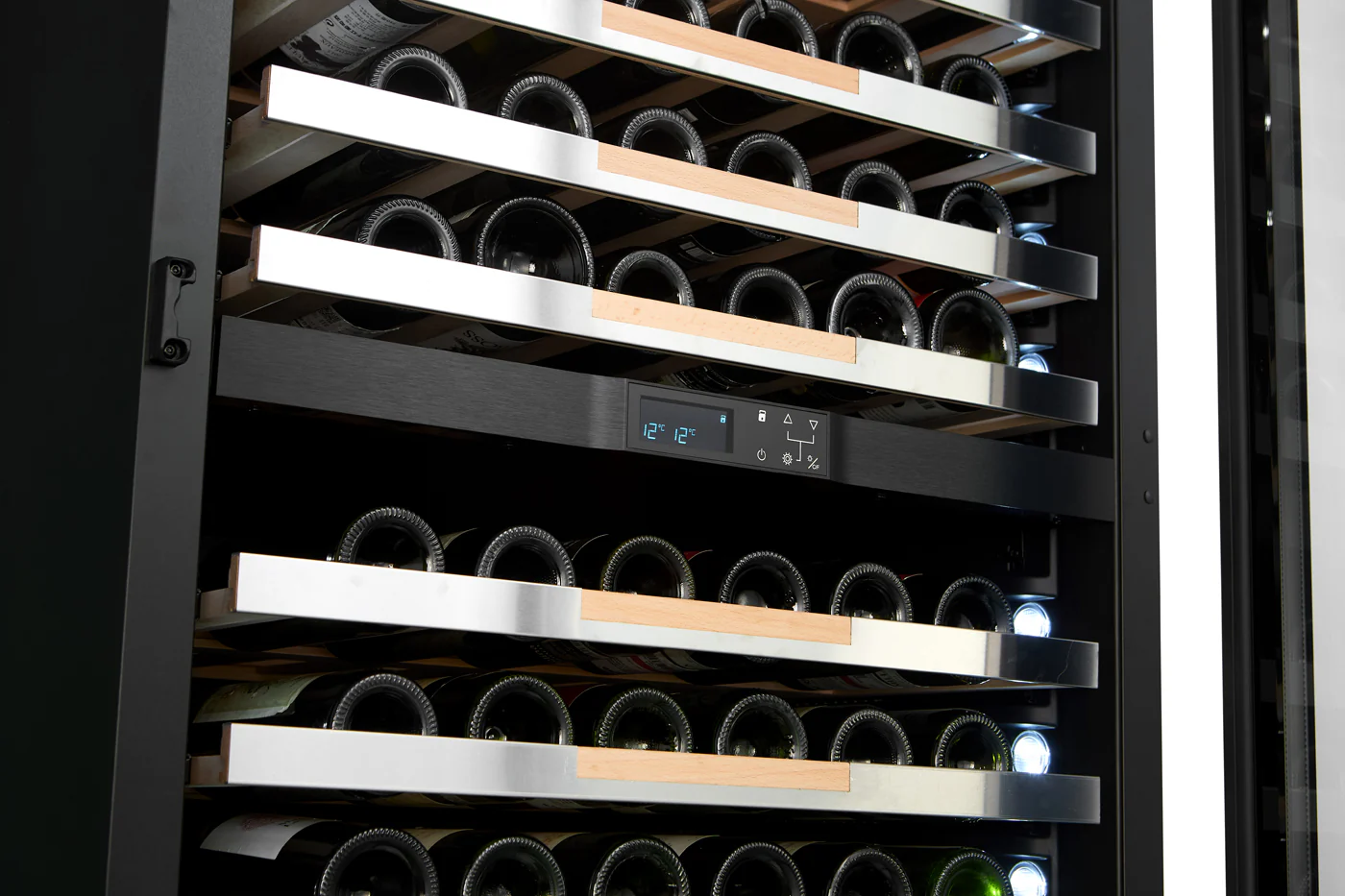 Discover this VINOA 250-bottle wine cellar, a perfect balance between luxury and performance for the most discerning wine lovers. Designed to hold up to 250 bottles, this dual-temperature cellar gives you the freedom to simultaneously store your red and white wines in optimal conditions, between 5 and 20°C, ensuring the preservation and enhancement of each vintage.