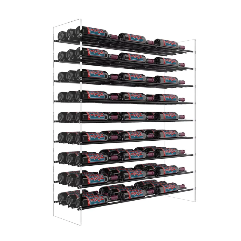 Standing just under 4 feet tall, the unit is compact yet highly expandable. Its transparent sides enhance visibility and allow for creative enhancements such as LED lighting. This rack is perfect for modern cellars, kitchen displays, or boutique wine shops seeking a clean, sophisticated look.