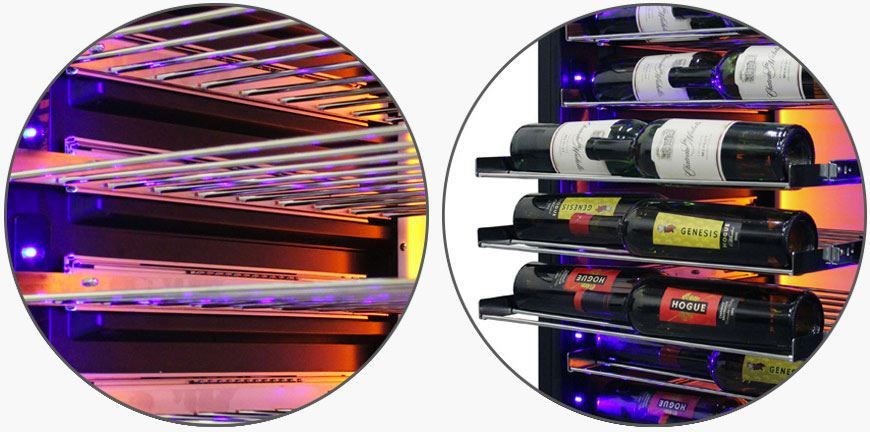 Sorry - this product is no longer availablePrivate Reserve 141-Bottle Backlit Panel 168 Single-Zone Wine CoolerVinotemp's Private Reserve Series 141-Bottle wine cooler has innovative features such as telescopic shelves, label forward wine bottle display, interior Backlit in three different colors, and LED side lighting to maximize your display capability Hinge * Right Hinged (Door Opens Left To Right) EL-168COMM Left Hinged (Door Opens Right to Left) EL-168COMM-L $5,599.00 Qty: Buy Now Ship toSelect countryUnited StatesCanadaAfghanistanAlbaniaAlgeriaAmerican SamoaAndorraAngolaAnguillaAntarcticaAntigua and BarbudaArgentinaArmeniaArubaAustraliaAustriaAzerbaijanBahamasBahrainBangladeshBarbadosBelarusBelgiumBelizeBeninBermudaBhutanBoliviaBosnia and HerzegowinaBotswanaBouvet IslandBrazilBritish Indian Ocean TerritoryBrunei DarussalamBulgariaBurkina FasoBurundiCambodiaCameroonCape VerdeCayman IslandsCentral African RepublicChadChileChinaChristmas IslandCocos (Keeling) IslandsColombiaComorosCongoCook IslandsCosta RicaCote D'IvoireCroatiaCubaCyprusCzech RepublicDenmarkDjiboutiDominicaDominican RepublicEcuadorEgyptEl SalvadorEquatorial GuineaEritreaEstoniaEthiopiaFalkland Islands (Malvinas)Faroe IslandsFijiFinlandFranceFrench GuianaFrench PolynesiaFrench Southern TerritoriesGabonGambiaGeorgiaGermanyGhanaGibraltarGreeceGreenlandGrenadaGuadeloupeGuamGuatemalaGuineaGuinea-bissauGuyanaHaitiHeard and Mc Donald IslandsHondurasHong KongHungaryIcelandIndiaIndonesiaIran (Islamic Republic of)IraqIrelandIsraelItalyJamaicaJapanJordanKazakhstanKenyaKiribatiKoreaKorea, Democratic People's Republic ofKuwaitKyrgyzstanLao People's Democratic RepublicLatviaLebanonLesothoLiberiaLibyan Arab JamahiriyaLiechtensteinLithuaniaLuxembourgMacauMacedoniaMadagascarMalawiMalaysiaMaldivesMaliMaltaMarshall IslandsMartiniqueMauritaniaMauritiusMayotteMexicoMicronesiaMoldovaMonacoMongoliaMontenegroMontserratMoroccoMozambiqueMyanmarNamibiaNauruNepalNetherlandsNetherlands AntillesNew CaledoniaNew ZealandNicaraguaNigerNigeriaNiueNorfolk IslandNorthern Mariana IslandsNorwayOmanPakistanPalauPanamaPapua New GuineaParaguayPeruPhilippinesPitcairnPolandPortugalPuerto RicoQatarReunionRomaniaRussiaRwandaSaint Kitts and NevisSaint LuciaSaint Vincent and the GrenadinesSamoaSan MarinoSao Tome and PrincipeSaudi ArabiaSenegalSerbiaSeychellesSierra LeoneSingaporeSlovakia (Slovak Republic)SloveniaSolomon IslandsSomaliaSouth AfricaSouth Georgia & South Sandwich IslandsSpainSri LankaSt. HelenaSt. Pierre and MiquelonSudanSurinameSvalbard and Jan Mayen IslandsSwazilandSwedenSwitzerlandSyrian Arab RepublicTaiwanTajikistanTanzaniaThailandTogoTokelauTongaTrinidad and TobagoTunisiaTurkeyTurkmenistanTurks and Caicos IslandsTuvaluUgandaUkraineUnited Arab EmiratesUnited KingdomUnited States minor outlying islandsUruguayUzbekistanVanuatuVatican City State (Holy See)VenezuelaViet NamVirgin Islands (British)Virgin Islands (U.S.)Wallis and Futuna IslandsWestern SaharaYemenZambiaZimbabwe *Other *Shipping MethodNameEstimated DeliveryPriceNo shipping optionsApply Custom wishlist OKAdd to wishlistAdd to compare listVinotemp's Private Reserve Series 141-Bottle wine cooler has innovative features such as telescopic shelves, label forward wine bottle display, interior Backlit™ in three different colors, and LED side lighting to maximize your display capability. This Vinotemp wine refrigerator is front venting with easy installation to build in and fit perfectly in any kitchen or bar area. The commercial style wine cooler is an entertainer's delight with three different color options to display whatever mood fits. The design forward wine cooler features vibration-damping design to better protect its contents and is engineered for low energy consumption and low noise. Its patented interior Backlit™ panel has three different options - Heliotrope, Amber, and Vinotemp BioBlu™ (which helps reduce the growth of bacteria and mold) - and can be selected at any give time. Adjustable temperature range allows users to select a proper, customized storage and serving temperature for light or darker wines. Sturdy, stylish label forward VinBo™ Racks (patent pending) cradle bottles so the labels of wine stored are front facing while the racks glide and extend forward, adding to the cooler's visual appeal and function. A digital LED temperature display makes temperatures easy-to-read and ensures wine is being stored and served at the appropriate temperature. FEATURESCapacity: approx. 141 750ML Bordeaux bottles and may include bulk storageApplication: Front exhaust for built-in or free standing installationsTemperature Range: 41°- 64°FAmbient Temperature Range: 41° - 100°F / Humidity 45~90%Control: Digital Temperature ControlPatented interior Backlit™ (baklīt) panel: Heliotrope, Amber, and Vinotemp BioBlu™ back-lit (U.S. Patent No. D868849)Label forward, VinBo™ Racks (patent pending)Shelves can be adjusted to accommodate more or less bottles.Top rack and bottom storage compartment can fit larger style bottles like Champagne and Magnum.Comes with a charcoal filterIndoor/Outdoor: Indoor onlySecurity Lock: YesRated Voltage: AC 115VFrequency: 60 HzAlso available with a Left HingeETL listed for residential and commercial useDimensions: 23 7/8"W X 28 3/4"D X 73 7/8"H OverviewReviewsContact UsVinotemp's Private Reserve Series 141-Bottle wine cooler has innovative features such as telescopic shelves, label forward wine bottle display, interior Backlit™ in three different colors, and LED side lighting to maximize your display capability. This Vinotemp wine refrigerator is front venting with easy installation to build in and fit perfectly in any kitchen or bar area. The commercial style wine cooler is an entertainer's delight with three different color options to display whatever mood fits. The design forward wine cooler features vibration-damping design to better protect its contents and is engineered for low energy consumption and low noise. Its patented interior Backlit™ p