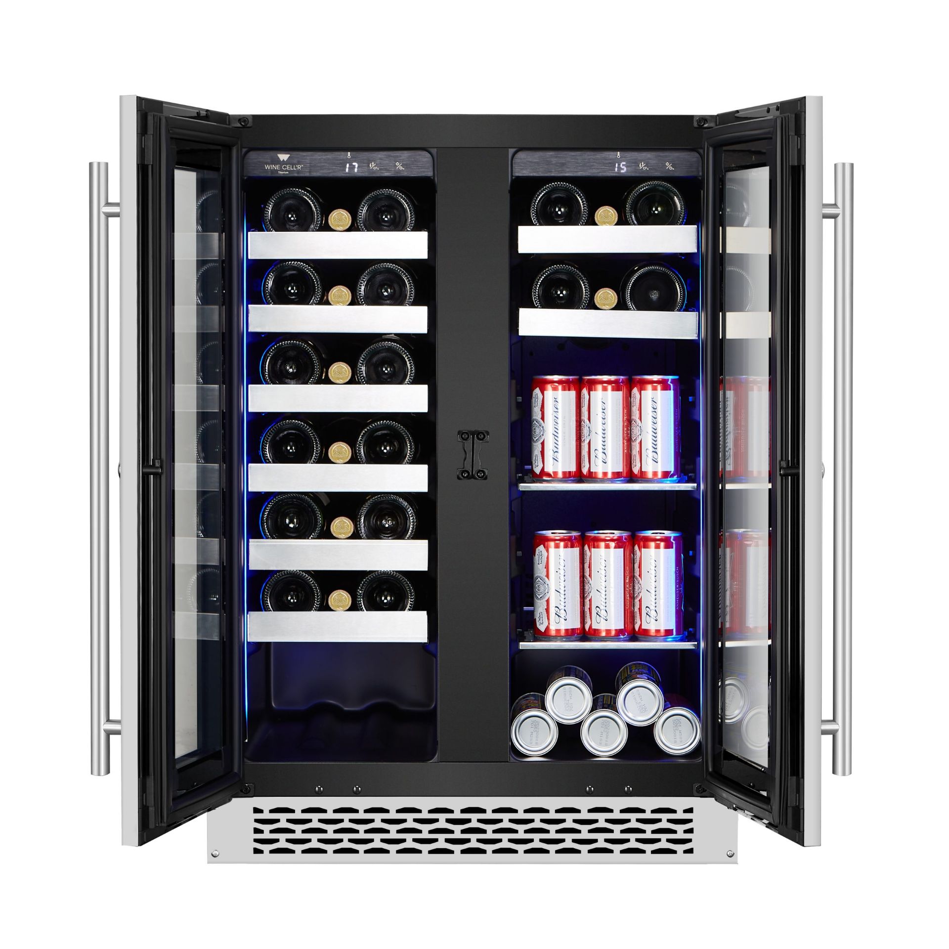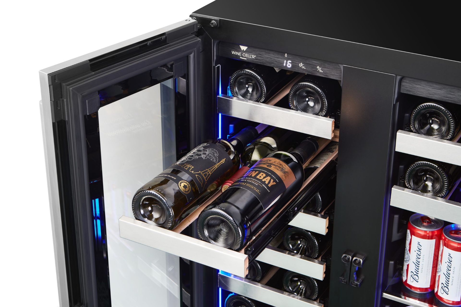 Wine Cell’R’s new Titanium range pushes back the limits of wine preservation. 27 bottles, 43 cans Two Zones Wine Cellar- Beverage Center.